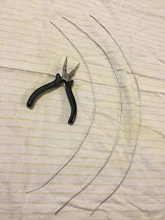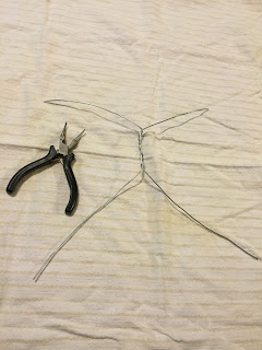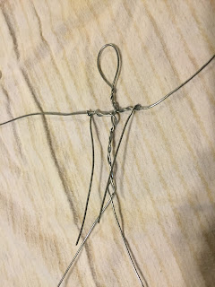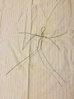 To create the armature for the child cut 3 even length wires aprox 12 to 16 inches long depending on the size you want your final piece to be. you can tell the size by the glass bottle you choose.