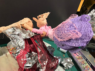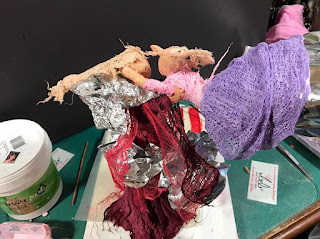 Keep adding some more layers of Creative Paperclay Material® and details for example work the shape of their heads hands legs. Once you are happy with the result set it aside to completely dry. Important note is make sure you always make the sculpt a little thinner in shaped. You will be using custom dyed cotton cheese cloth with the Paverpol® Fabric Hardener and this process will increase the Creative Paperclay Material® sculpt thickness. But it is ok this process will help strengthen the sculpt thanks to the fabric Paverpol® soaked layers you will be add later on.
