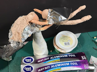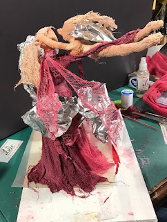 Wrap the hands and create the long sleeves and suit. Set side to dry.