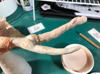 Once you are completely satisfy with the pose start covering the entire piece with a light layer of Creative Paperclay Material® and set aside for that layer to dry completely.