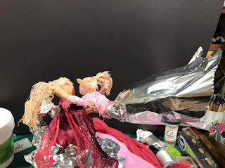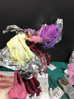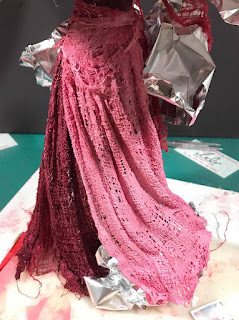 good if the fabric is not too wet when you prop it. If you are happy with the fabric flow movement and the shape of the piece feel free to set it aside and dry overnight. Once the art doll is completely dry you can now very carefully start removing all the pins and aluminum foils.