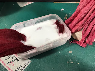 Now for all my Paverpol® Sculpts like to dye my owns cotton cheese fabrics. I also dye the Paverpol® brand fabrics and they work very well. If you don’t want to dye them is ok, but I find it fun and more detailed when I color my own fabric and use the clear Paverpol® intead of the Paverpol® Bronze. If you are interested on learning how I dye mine here is a quick view to the steps. Remember to always follow the dye manufacturers instructions. It will help you achieve the color result you are looking for. For this doll I used Liquid Rit color dyes.