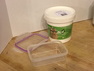 Before you use the clear Paverpol® Pour it to different tight seal container. This way you will not get the main tub all colored with the bleeding of the fabrics dyes and will