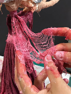 Before adding the soaked fabric panels to the doll make sure you remove any excess Paverpol® so is not too heavy to shape the fabric and sculpt the movement in place.