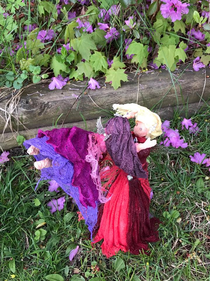 Choose your favorite color of fabric for the hair soak it with Clear Paverpol® and play with the shape untill you find the proper flow you are looking for.