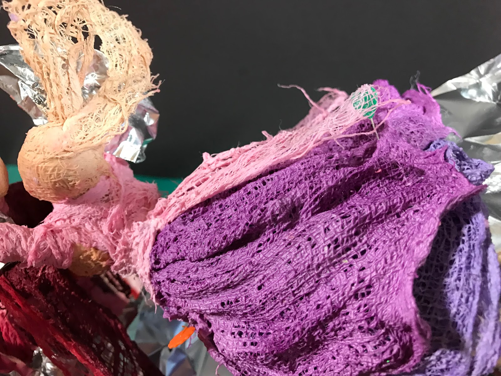 good if the fabric is not too wet when you prop it. If you are happy with the fabric flow movement and the shape of the piece feel free to set it aside and dry overnight. Once the art doll is completely dry you can now very carefully start removing all the pins and aluminum foils.
