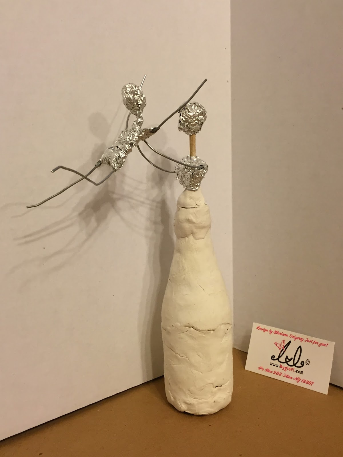 To create the armature for the child cut 3 even length wires aprox 12 to 16 inches long depending on the size you want your final piece to be. you can tell the size by the glass bottle you choose.
